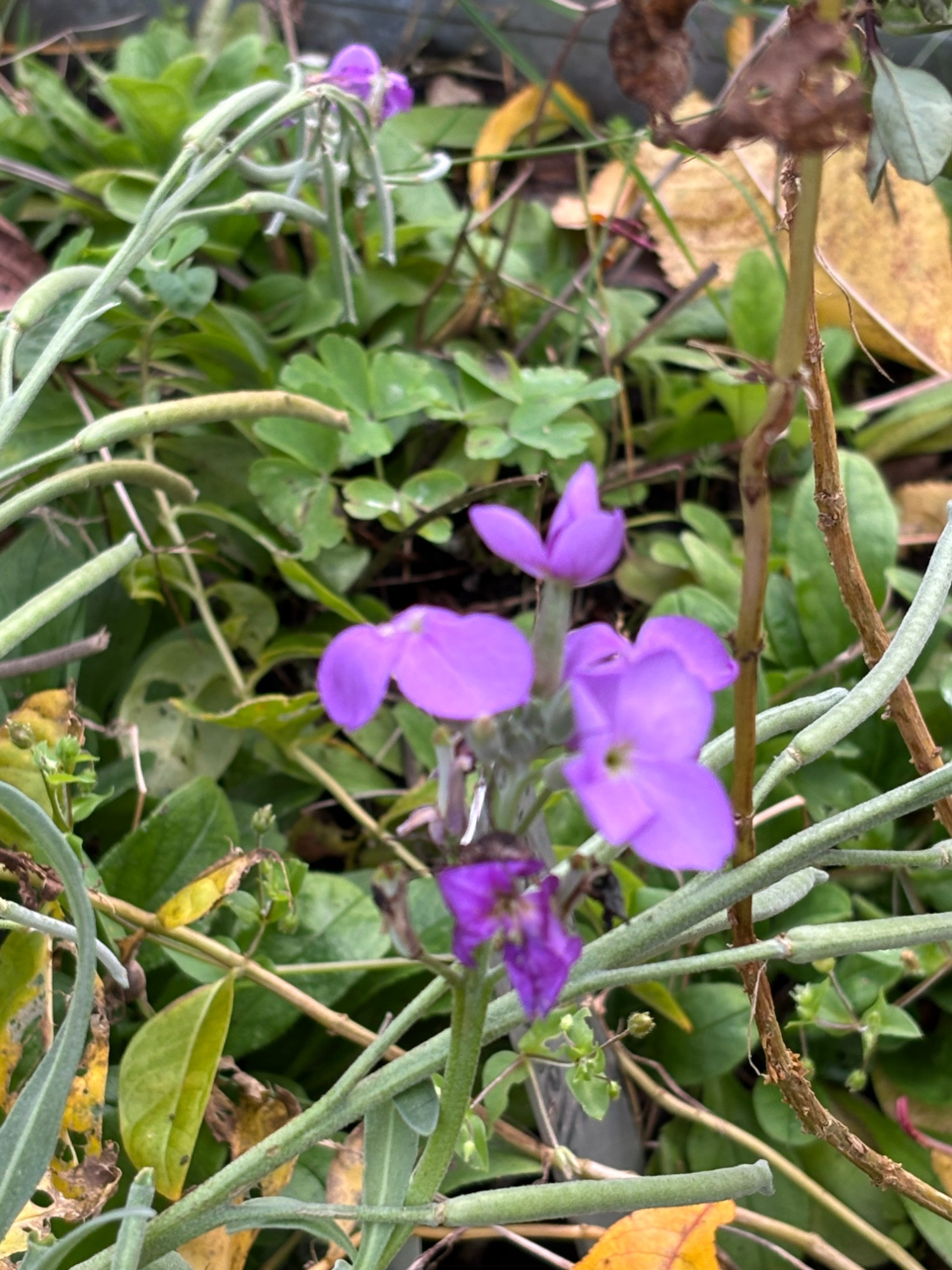 Die Levkoje dreht auch nochmal auf, und die Bienen freuen sich über die Gäbseblümchen