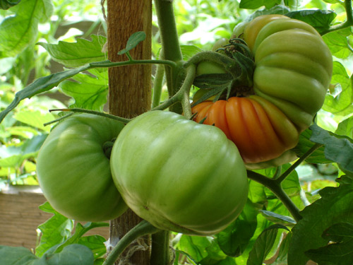bisher sieht meine einzige übriggebliebene rhodia f1 vielversprechend aus. die früchte sehen der ur-salztomate bisher sehr ähnlich, sind aber noch nicht reif. die größe der früchte stimmt jedenfalls. sie sind jedenfalls viel kleiner als die meiner f3- absaat, die noch riesenhafter sind als die meiner vorjährigen f2-absaat.