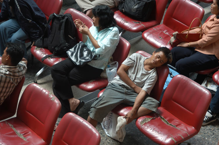 ... zu früh am Bahnhof Hualamphong, warten wie alle ...