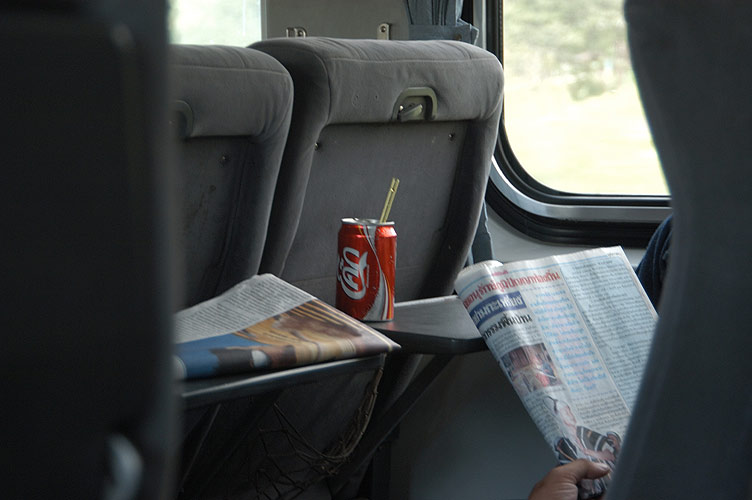 ... unterwegs, 4,5 Stunden bis Nakhon Ratchasima. Die Bangkok Post hatte ich bald durch, die Cola war warm geworden