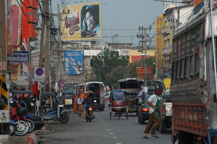 ... angekommen. Nakhon Ratchasima ist die 2tgrößte Stadt in Thailand, nicht unbedingt das, was man hübsch nennt. Aber sie ist sehr lebendig, und das liebe ich. - Was sagt dieses Mädchen ins Mobile? ... "Mama, er drückt schon wieder an den Mitessern!! Wir kommen nächsten Sonntag nicht zum Braten!" (es war Montag) ...