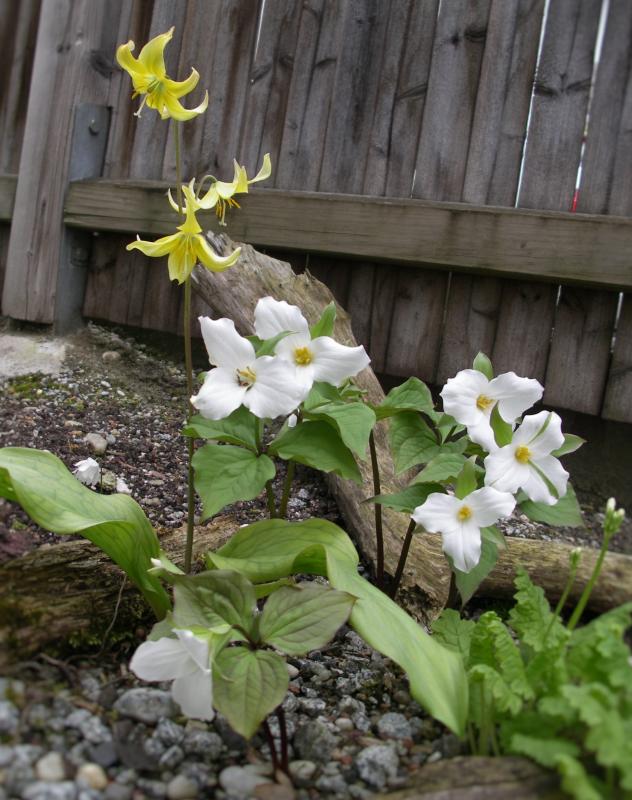 Inzwischen habe ich ja auch einige Trilliumarten. Aber die einzige, die mich bisher wirklich überzeugt, ist da gewöhnliche Trillium grandiflorum. Ich finde die grünen Streifen in der Blüte rechts recht apart, aber die werden sicher nicht auf Dauer bleiben.