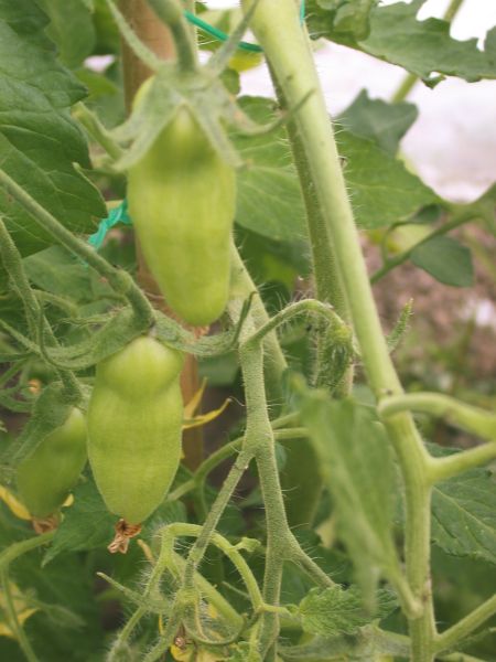 Inzwischen nehmen selbst bei mir die Tomaten Formen an, wenn auch noch keine Farbe ;DDiese 'Banana Legs' sieht ja sehr witzig aus. Mit welcher Farbe und Größe werde ich sie als reif ansehen können? Ist sie gelb wie Bananen?Ich bin ja so gespannt.Inzwischen ernte ich johannisbeergroße goldene Kügelchen von meinerWildtomate, um schon mal den Appetit anzuregen.