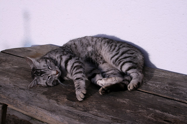 Guten Morgen aus dem trüben Franken,herrlich ist es draussen, angenehm kühl, endlich durchatmen und die "Kinder" schlafen selig nach dem Frühstück.Letzte Nacht war es mit 16 Grad angenehm, eigentlich sehr toll zum Schlafen...aber mit Dönerle im Arm, Bubu auf den Füßen und Baby auf der Brust war es auch ohne Zudecke recht warm gewesen.Mini war offenbar kurz zum Essen da. Ich hatte wenig rausgestellt, weil das sonst nur Nahrung für Fliegen wird, aber das dumme Ding hat sich nicht bemerktbar gemacht, also gab es keinen Nachschlag. Dabei kennt es das Schlafzimmerfenster sehr genau. Es hätte da nur mal schreien müssen. Fenster steht offen, liegt geschützt hinter einer riesigen Aukuba und ist bequem für Katz zu erreichen zum Reinplärren (Netz ist dort auch dran).GRÜNCHEN, wie geht es dem Leon? Und Puschkin?