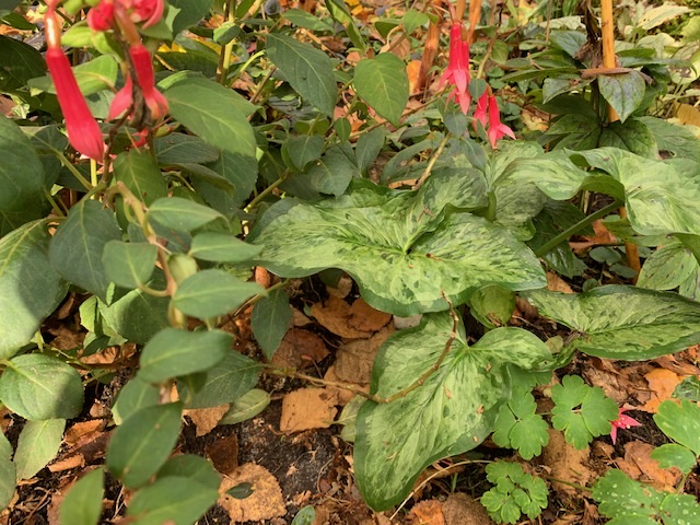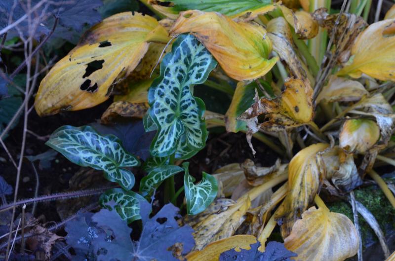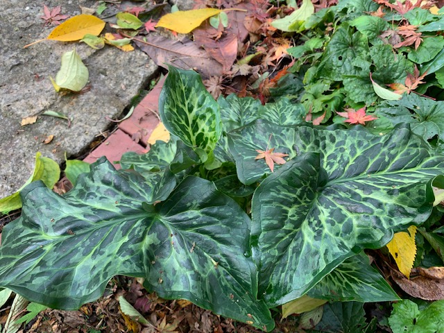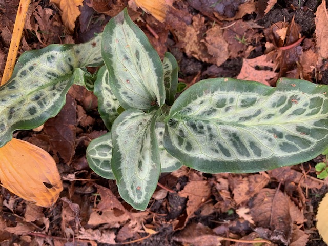 Arum concinnatum 'Aghia Vavara' legt hier ganz gut zu.