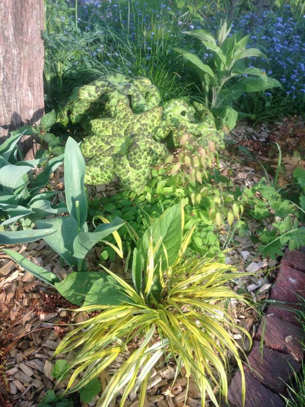 Das Riesendings ist Klasse! ich überlege schon, wo es hinpassen könnte, irgendwann einmal...Hier ist noch ein mir unbekanntes gelbes Epimedium aufgeblüht, ungefähr 30-40 cm hoch. Wer könnte das sein?