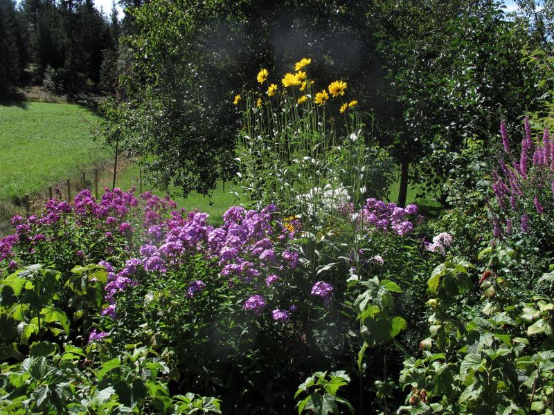 Die violetten Phlöxe 'Uspech' - der Dünklere wurde hier ev. als 'The King' erkannt - sollten wohl mal geteilt werden: