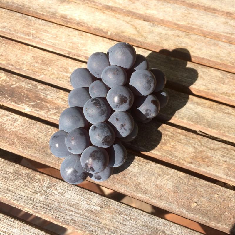 Ich habe hier an der Pergola eine dunkle Tafeltraube unbekannter Sorte.