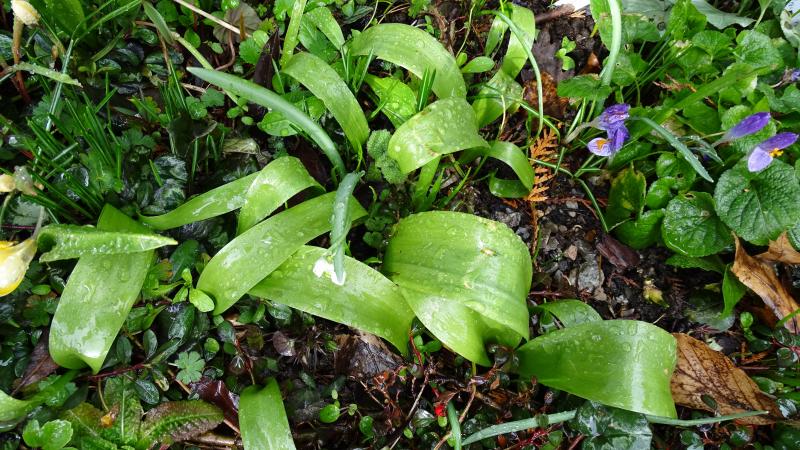 Tulipa turkestanica hat recht dunkles, eher schlankes Laub. In meinem Beet ist auch diese hellgrüne Laub aufgetaucht, wo ich eine Wildtulpen-Mischung versenkt habe, und ich meine, Tulipa saxatilis war ebenfalls dabei.