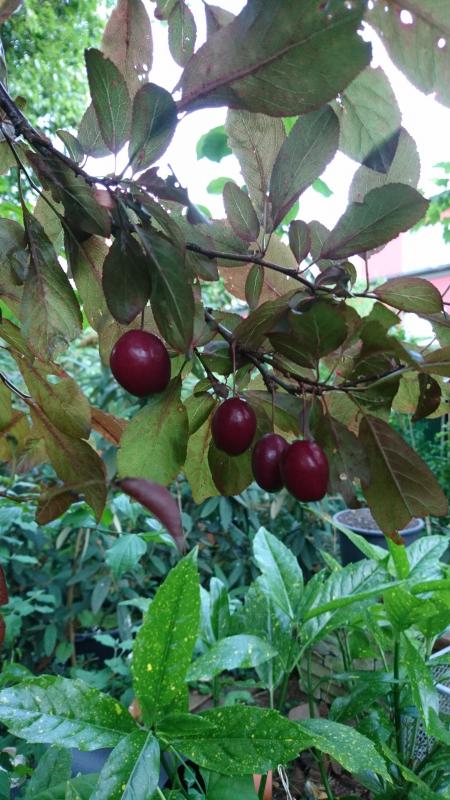 Ja, es ist wirklich zu früh für so rote Früchte an der Kirschpflaume...