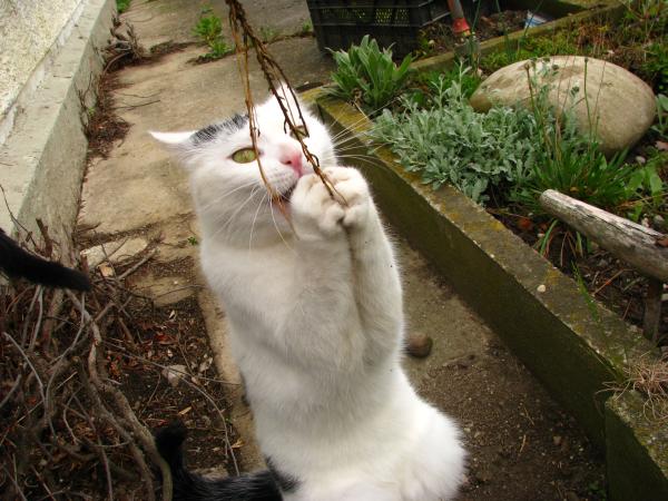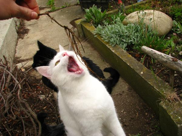 frauli hat heute den armen kater genervt und ihm vor dem gesicht mit einem zweig rumgewedelt.