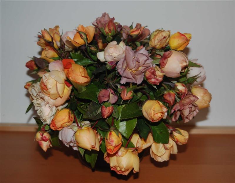Dieses Bild hat eher den Titel:Die letzten Rosen im HerbstVor Väterchen Frost, heute Abend noch geschnitten und meinem Vater gewidmet, der auch immer nur die letzten seiner Rosen für die Vase geschnitten hat.Traditionen die sich fortsetzen.