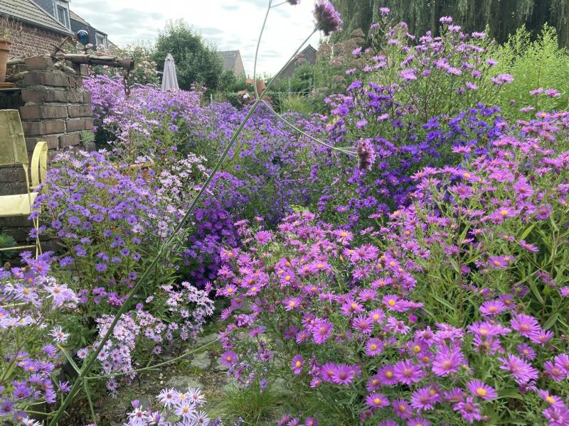 Den Astern ist die Feuchtigkeit gut bekommen, 'Patricia Ballard' in diesem Jahr ohne Mehltau!