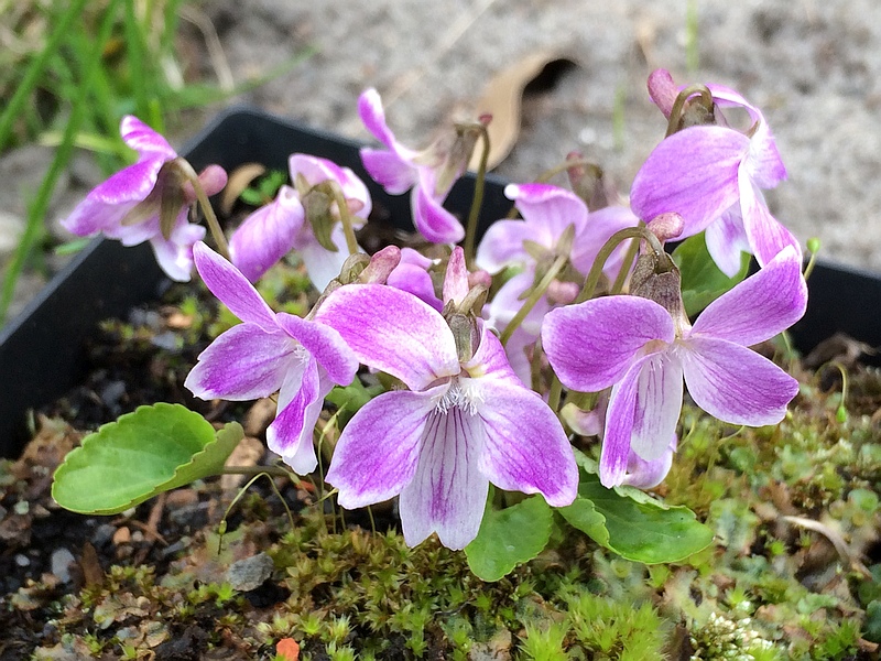 Das kommt mir komisch vor. Hier versamt sich 'Sulphurea' quer durch den ganzen Garten und taucht an Stellen auf, an denen es noch nie Veilchen gab, genauso vital wie die blauen und weißen, nur die roten sind irgendwie zurückhaltender.