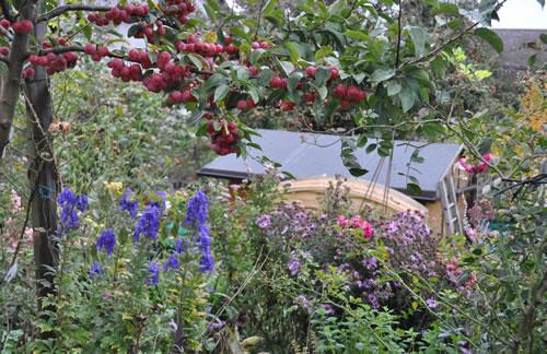 Bei mir blüht auch noch eine Sterndolde, auch nicht gerade ihre Jahreszeit, oder! Hier mal ein wilder Garteneinblick in aller Ueppigkeit des Oktobers und mir gefällts