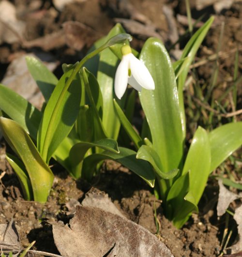 Das Galanthus woronowii ist ziemlich zögerlich, nur eine einzige Blüte