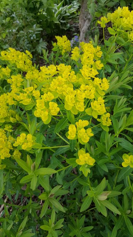 Aber was mag es sein? Euphorbia palustris oder einer ihrer Sorten ist es vermutlich nicht. Eine andere Blatttextur, wesentlich dünnere Triebe und eine Blütezeit, die mehr als zwei Wochen später beginnt als bei meinen Sumpfwolfsmilchtypen im Garten.
