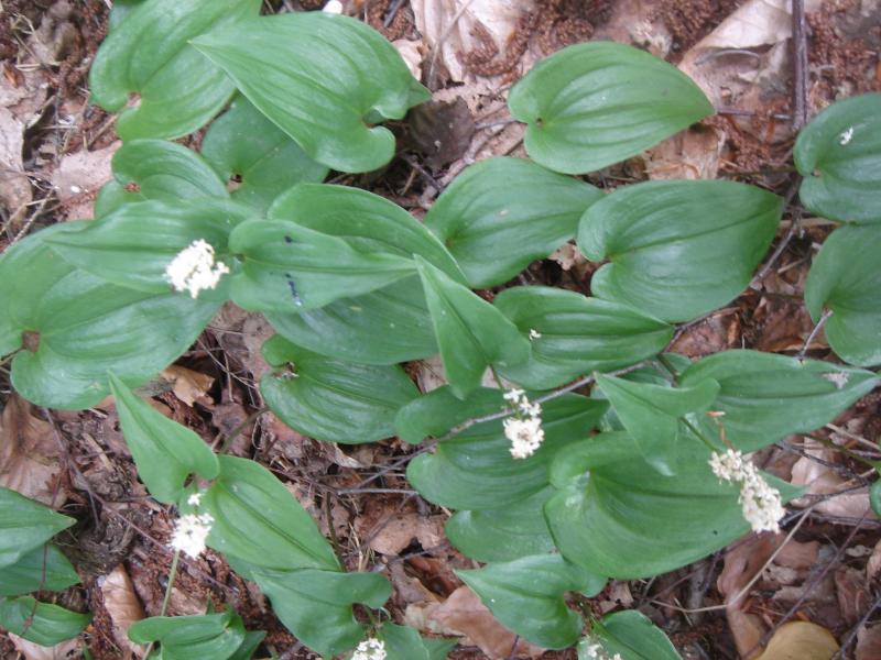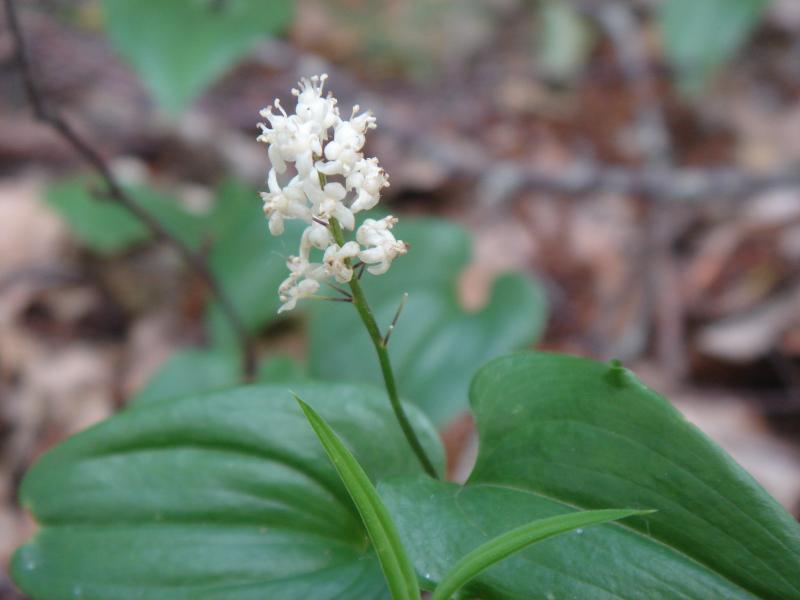 Zunaechst das zweiblättrige Schattenblümchen, ein Maiglöckchengewaechs, wächst am Rande eines kleinen Fichtenwaldes, zu einer offenen