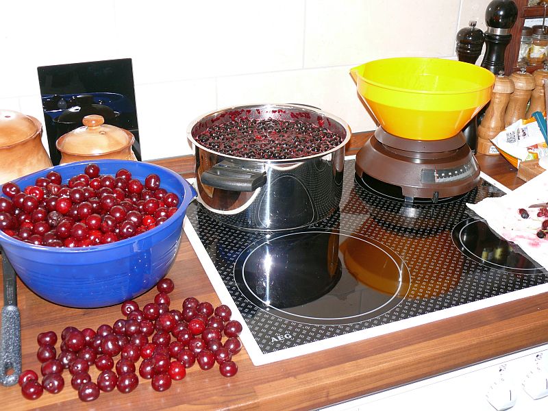 Heute die restlichen 5 kg Sauerkirschen und nochmal 1,5 kg schwarze Johannisbeeren.