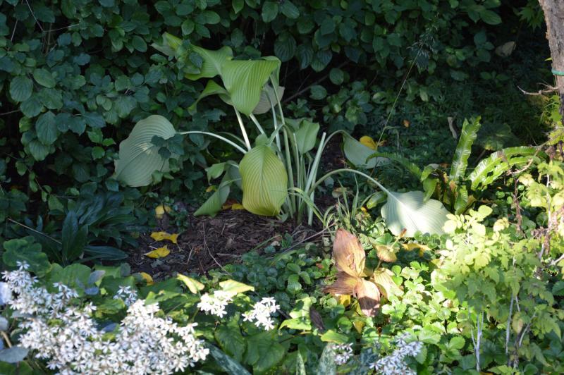 Ich hab jetzt mal im "Gehölzgarten" "aufgerüstet", viele Farne und ich hab ein paar meiner wenigen Hostas geteilt.Eine wahrscheinlich 'Sum and Substance' war besonders ergiebig