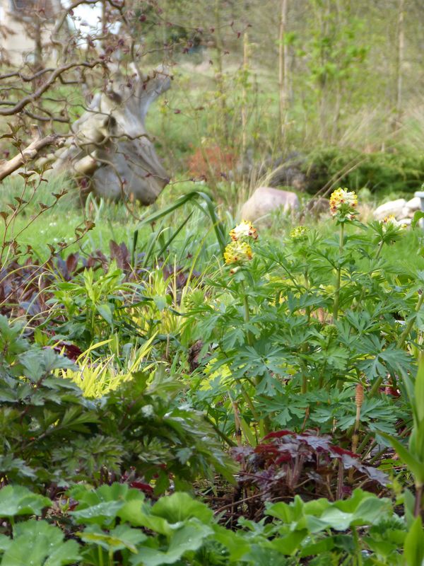 Und mein geliebtes Hepatica-Hügelchen mit Trillium sessile als Königin, die es dieses Jahr auf 4 Blüten gebracht hat. Jedes Jahr eine mehr :). Links davon die zarte Anemonella thalictroides, derweil macht sich Anemone nemorosa 'Alba plena' ganz schön dick. Ganz oben sitzen noch zwei Jeffersonia dubia (hier nicht zu sehen), wovon eine immer etwas später als die andere erscheint und blüht.