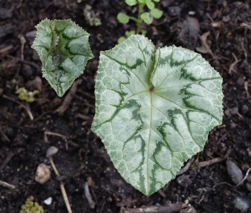 Cyclamen libanoticum zeigt die ersten Blätter. Eigentlich sehr früh.