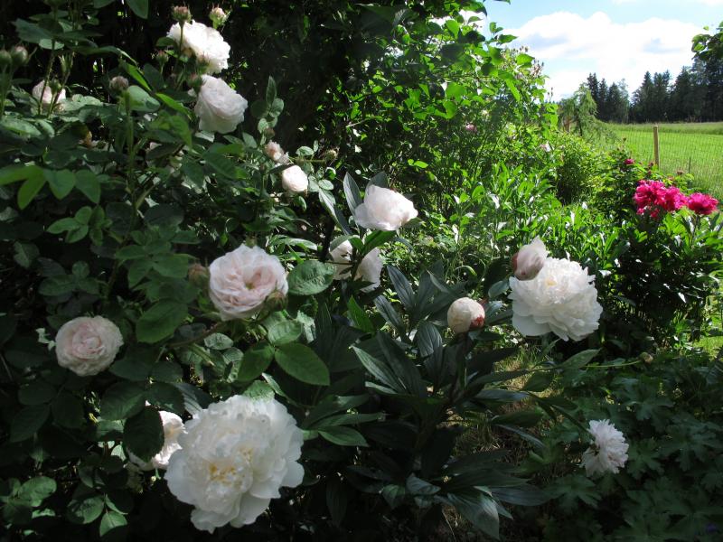 Rosen gibt’s zur Genüge - Lichterkönigin Lucia mit inzwischen gerodeter Unterpflanzung ( Geranium und Houttuynia)