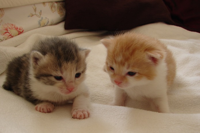 da könnte man wirklich schwach werden!!! sooo putzig diese kleinen. Und große Achtung hab ich auch von Graugrün, die das so aufopferungsvoll macht. Aber ich bin gestählt: meine freundin ist Katzenpflegerin, die hat öfter mal so kleine Dingelchen zum Vermitteln da, ich geh sie mir immer angucken. Nächste Woche kommt wieder eine Mama mit kleinen Babys. Wenn ich da jedes Mal schwach werden würde....GG darf ich da gar nicht mitnehmen, sonst hätten wir schon eine ganze Rasselbande.und hier mit schwesterlein...