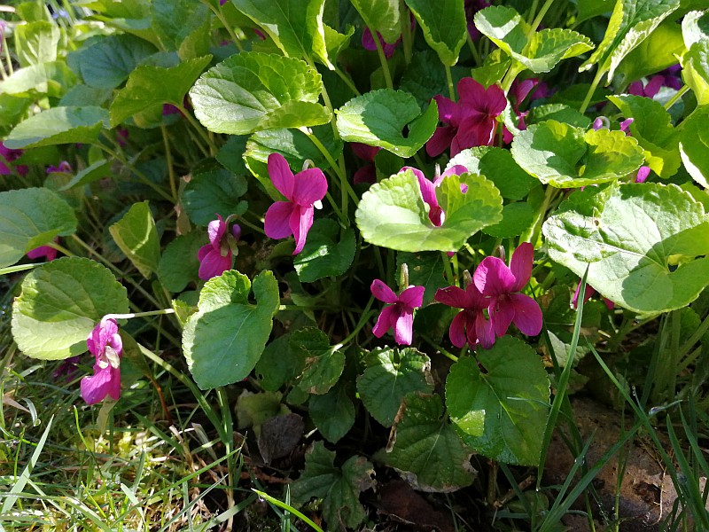 @Chica, ich bin mir inzwischen unsicher, ob das violettpinke Veilchen überhaupt ein Viola odorata ist. Es duftet jedenfalls nicht und ist deutlich größer als die üblichen blauen V. odorata. Für ein Viola sororia scheint mir die Blütezeit aber zu früh, jedenfalls wenn ich Viola sororia 'Freckles' als Referenz nehme. Die braucht noch geraume Zeit. Hab noch ein Foto angehängt. Kannst es Dir ja überlegen, ob Du von dem violettpinken was haben willst. Wüchsig ist es.