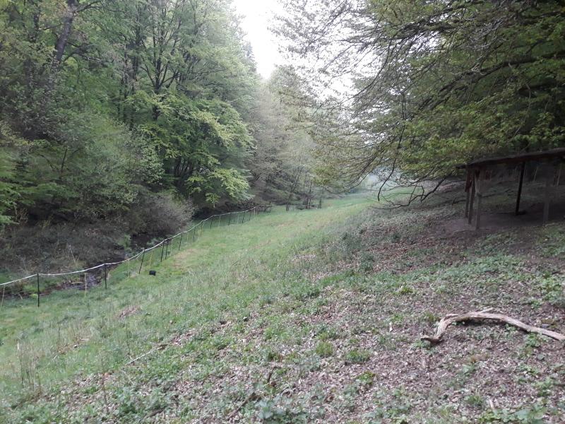 Hier auf dem Bild ist die Welt in Ordnung. Wir haben ein sehr gutes Verhältnis zum Revierförster. Die Weide habe ich bereits häufiger gezeigt. 500 m im Steilhang... sind die ersten 50 m in diesem Jahr bereits gezäunt. Dieses mal sind es die Ziegenmuttern, die die Fläche entern. Die Böcke sind noch nicht geschoren. Das ist auch bei den angesagten Temperaturen nicht möglich.