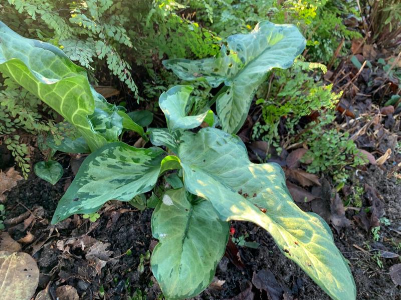Normalerweise treibt Arum maculatum erst im Februar aus - als einheimische Art ist es an kältere Winter angepasst. Bei mir auf schwerem, oft nassem Boden wächst ´Bakovici´wie Unkraut, auf leichteren Böden fühlt es sich nicht so wohl.