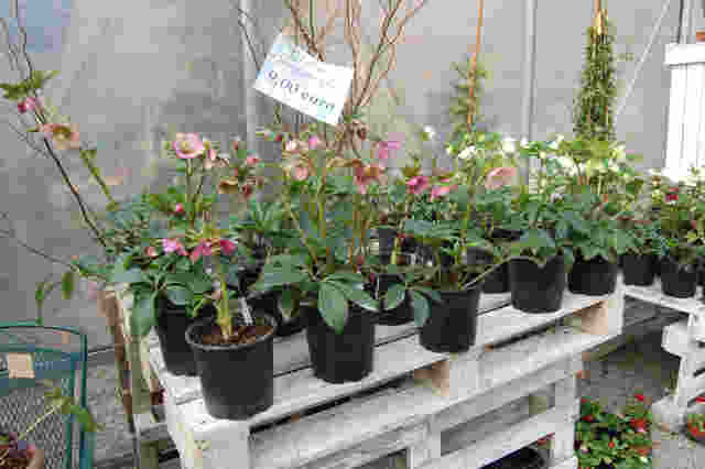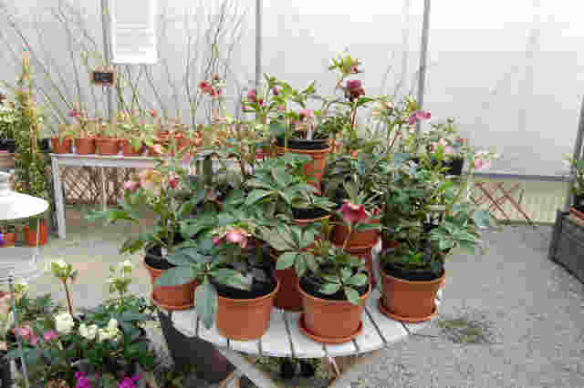 Vivaio Althea ist eine kleine, aber feine Gärtnerei in der Nähe von Como.Wir wurden aufs Freundlichste empfangen und sogleich herumgeführt.Im ersten Gewächshaus sind nebst einer kleinen Ausstellung mit Wildarten die gefülltblühenden H. x hybridus untergebracht.