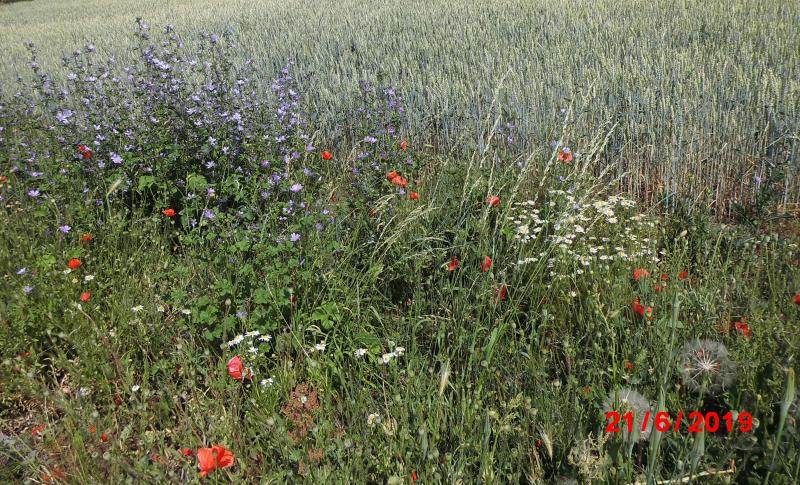 Die "netten" bunten Streifen auf den angehängten Fotos sind übrigens keine Blühstreifen sondern ganz normale Ackerränder ;) Sie entstehen ganz einfach von alleine. (Eh-da-Flächen)