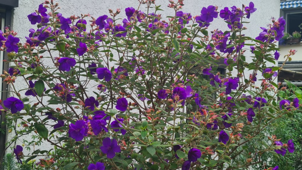 Seit Ewigkeiten hab ich mir mal wieder eine Tibouchina gegönnt und endlich zeigt sie die erste Blüte
