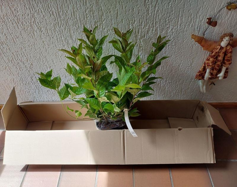 Da bin ich baff. Habe am 1.8. bei Lubera nach der Lieferzeit einer Cephalantus occidentalis Sugar Shack nachgefragt, weil ich bald in Urlaub fahre. (Dieser Knopfbusch wurde hier im Forum gezeigt!!) Die freundliche Antwort kam sehr schnell - aus der Schweiz. Am 2.8. habe ich per Email Bescheid gegeben, dass ich die Pflanze möchte. Und heute ist sie schon da, trotz Versand mit DPD ;D.