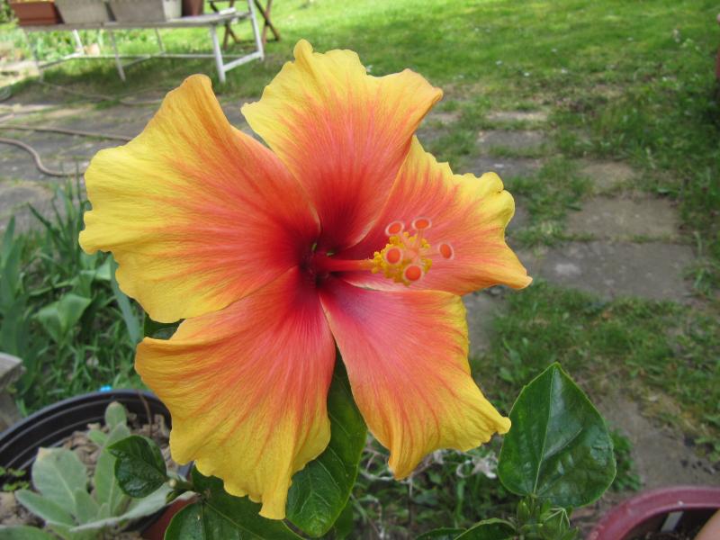 So, ich hab mich jetzt nicht mehr zurückhalten können und im Gartencenter eine New Apollo gekauft - in einem viel zu kleinen Topf und mit diesen dunklen Blättern.Zuhause hab ich sie sofort raus aus dem Topf, die obere Schicht Substrat weg, den Wurzelballen aufgeraut und in einen größeren Topf gepflanzt.Mal sehen, was aus ihr wird :-\ Hier erst mal die Blüte - das Gelb mit dem roten Schlund hat meinem GG sehr gefallen ;D Die Blüte sieht etwas lädiert aus - kommt vom Umtopfen.