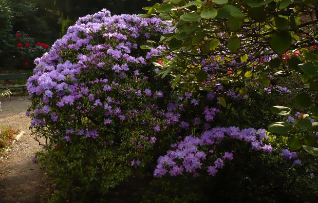Rh. lindleyi gefällt mir sehr.Hier blüht ein Riesenexemplar (über 3 m) einer Williamsianum-Hybride auf, die Sorte ist uns leider nicht bekannt.