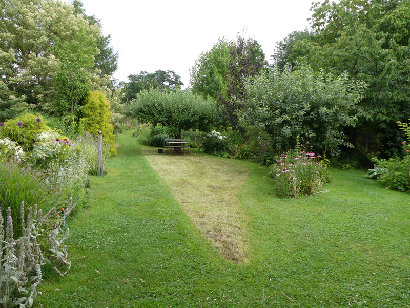 Am Wochenende stand die Wiesenmahd an, heute habe ich mit dem Rasenmäher noch für ein einheitliches Schnittbild gesorgt. Schon wirkt der Garten wieder ganz anders und viel größer. Die Wirkung wird sich wieder ändern, wenn die umgebenden Beete volle Höhe erreicht haben und zur Herbstblüte übergehen.