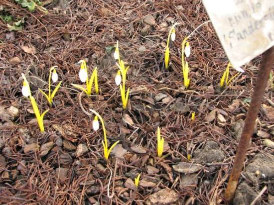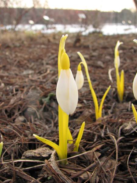 Gelbe Schneeglöckchen gehören nicht zu meinen Favoriten. Obwohl ein G. krsnovii ziemlich gelb-grün aus der Erde kommt. Mit diesem Foto möchte ich mich nochmal bei sarastro für die schönen kräftigen 'Brenda Troyle' bedanken. Es blühen zwar nicht alle gepflanzten Zwiebeln aber doch einige.