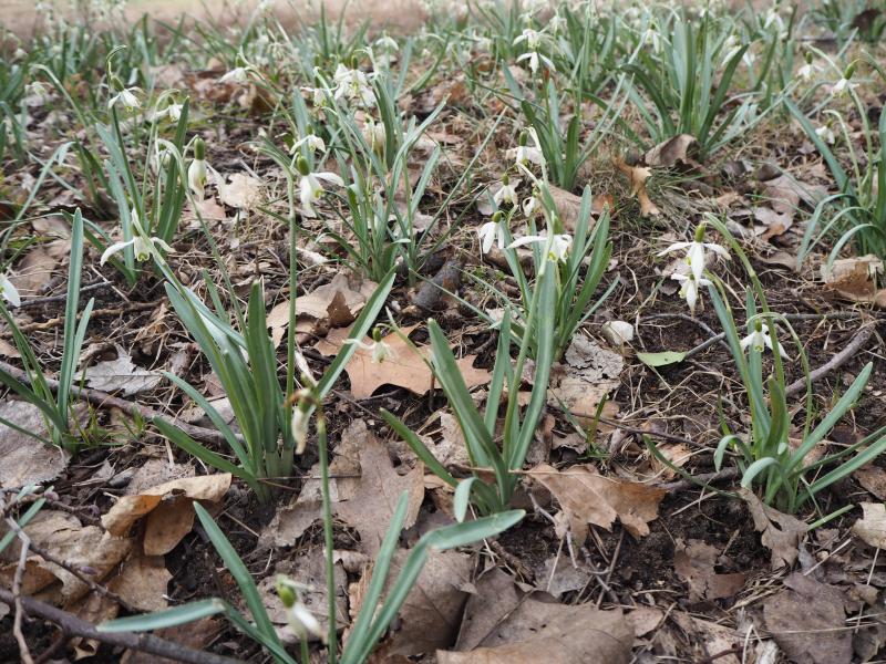 Ich bepflanze derzeit eine frisch aufgefüllte Fläche im Park und muss zugeben, dass das etwas nach Massenglöckchenhaltung aussieht. ;D Im Laufe der Jahre verschwinden Tuffs und kommen Sämlinge, so dass die eigenwilligen, gleichmäßigen Abstände verwischt werden.