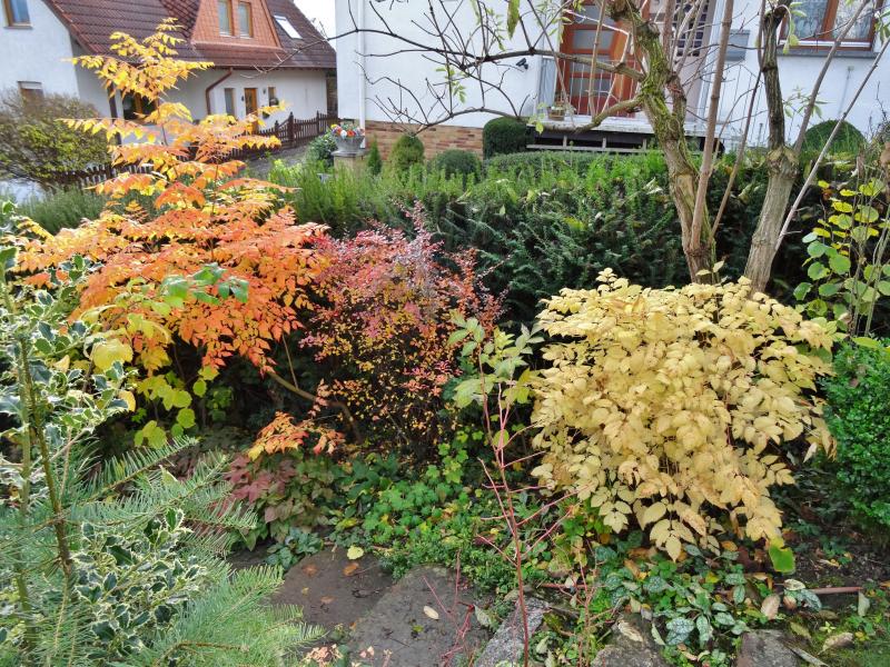 Wegen dieser Herbstfärbung und der frühen Blüte habe ich sie mir in den Garten geholt. Warum habe ich dieses Gehölz nicht auch an anderen Stellen gepflanzt?