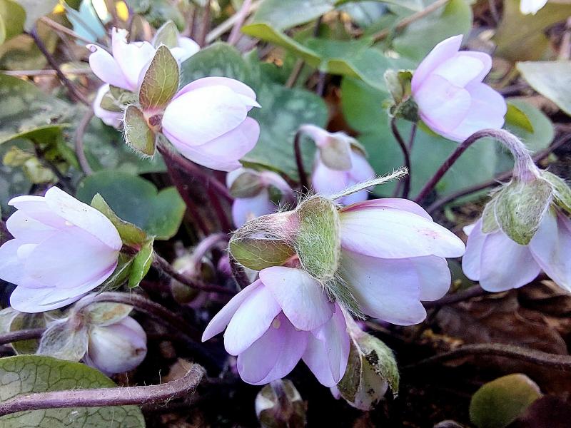 .....Die Freilandhepatica aktuell bei uns ziehen ob der wenig frühlingshaften Witterung wieder ihre Köpfe ein.