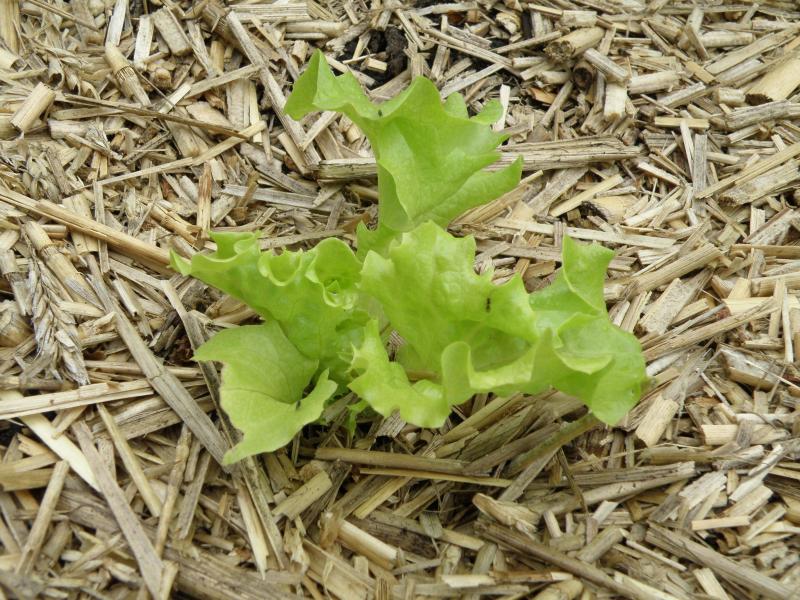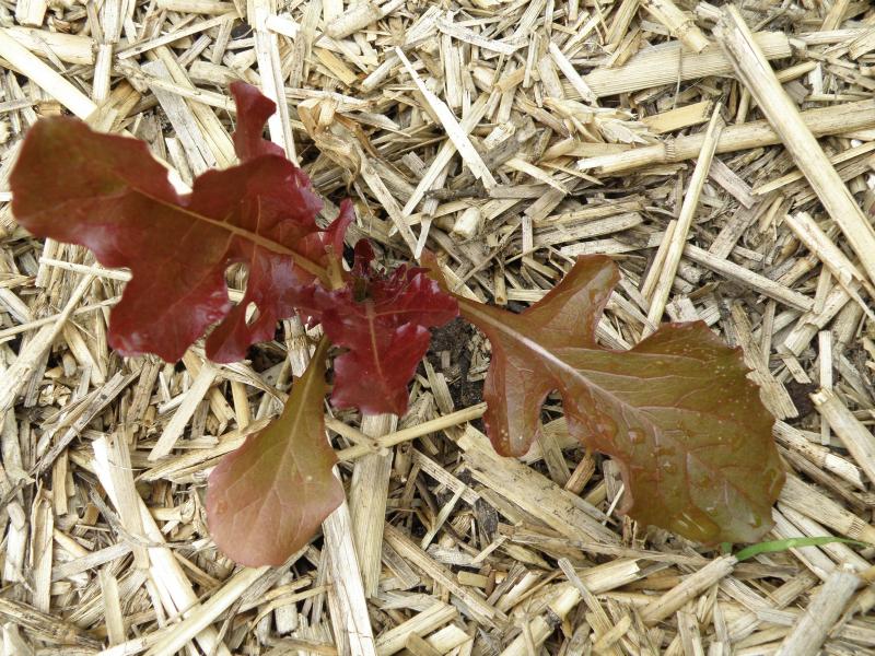 Auf jeden Fall kommen auch die jungen Salatpflanzen mit ihrem Miscanthuskragen bisher sehr gut klar.
