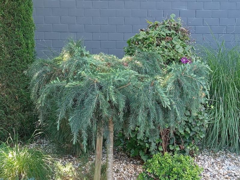 Ich halte das für Cedrus atlantica 'Glauca Pendula', eine Hängeform der blaunadeligen Atlaszeder.