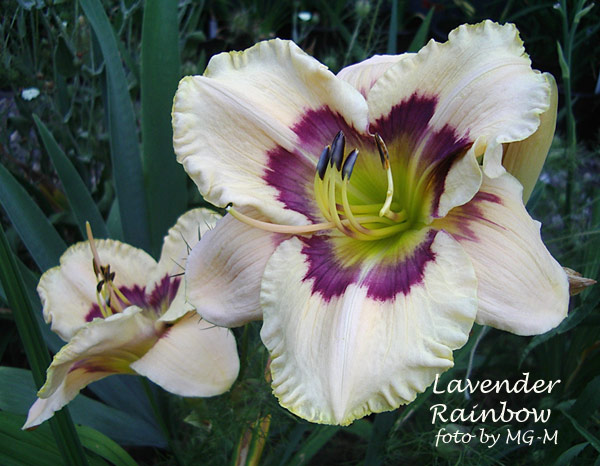 Ich will nicht behaupten, daß Lavender Rainbow immer so aussieht. Aber ganz früh am Morgen (vor 8 Uhr fotografiert), nach einer warmen Nacht und einem vorraussichtlich heißen Tag, sieht die Blüte so aus. Und ich bin glücklich, oft solche Blüten oder ähnliche erwischen zu können. Man muß nur zur richtigen Zeit schauen und den Augenblick genießen :-[Natürlich habe ich das Foto ein wenig bearbeitet. Das Licht um diese Uhrzeit ist einfach falsch und die Fotos werden zu dunkel. Daher bearbeite ich den Tonwert und die Helligkeit, aber ich bin nicht der Meinung, daß ich die Blüte damit manipuliere. Im gegenteil, ich versuche auszugleichen, was die Digi falsch wiedergibt