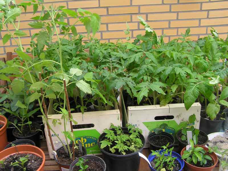 hier noch ein bild von gestern. abgehärtet sind sie eigentlich. sie standen jeden tag, wenn es 10 grad oder mehr hatte, draußen.die große, lange und etwas dünne ganz vorne ist die ranktomate carnica. ansonsten sind alle sehr robust gewachsen.nur meine ampeltomaten machen mir sorgen...die hab ich schon vor längerem in die ampeln gesetzt (kommen auch nachts rein) und seitdem mickern sie. die unteren blättchen gehen kaputt und gewachsen sind sie seitdem auch nicht. ich befürchte, daß das an der erde liegt. vielleicht ist ein pilz oder ähnliches in ihr?!ich denke, die sollte ich nochmals in eine andere erde topfen...