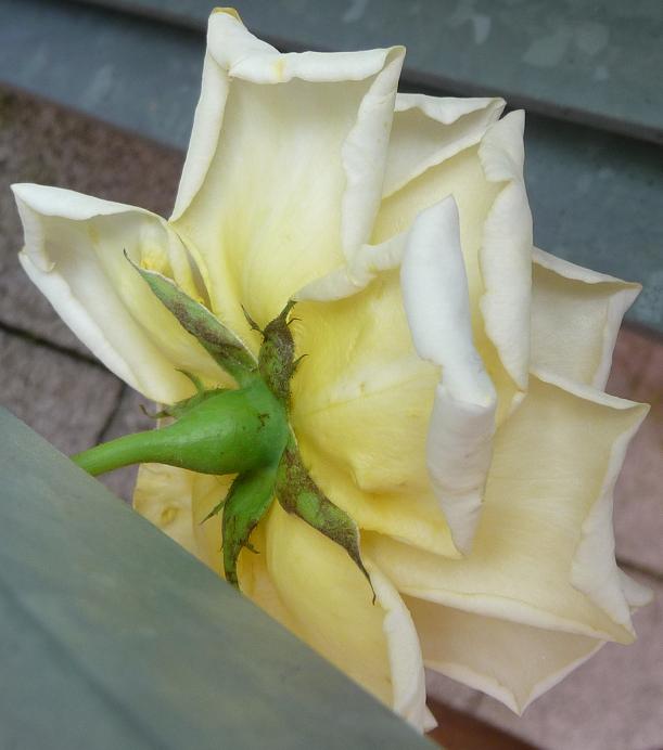 Es erinnert mich ein bißchen daran, als Madame noch neben Belkanto stand, das war auch sehr schön, aber Belkanto war heller und hatte null Duft. Ich hab sie auch nicht mehr, weil sie superstachelige Raketentriebe schnurgerade von 3 m Länge produziert hat, das gefiel mir nicht.Ich fühle mich ja schon ein bißchen wie ein Verräter, erst möchte ich eine Rose unbedingt und dann muß sie nach 2 oder 3 Jahren wieder gehen... aber sie haben's ja beim neuen Besitzer in aller Regel besser als bei mir in den Balkonkübeln...Hier Olde Romeo alleine, er duftet ja auch auch sagenhaft.