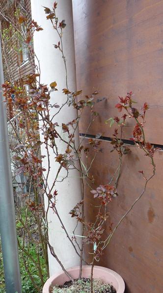 Die Mutterrose, Bright Fire, ein GB-Import und von mir Leuchtturm genannt, ist schon ganz schön weit am Austreiben: