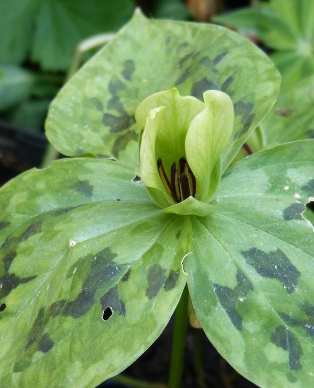 Das gefällt mir sehr sehr gut, vielleicht sollte ich doch noch ein paar pflanzen ... aber den Anfang habe ich heute eh schon gemachtLeider etwas angeschneckt - Trillium discolor