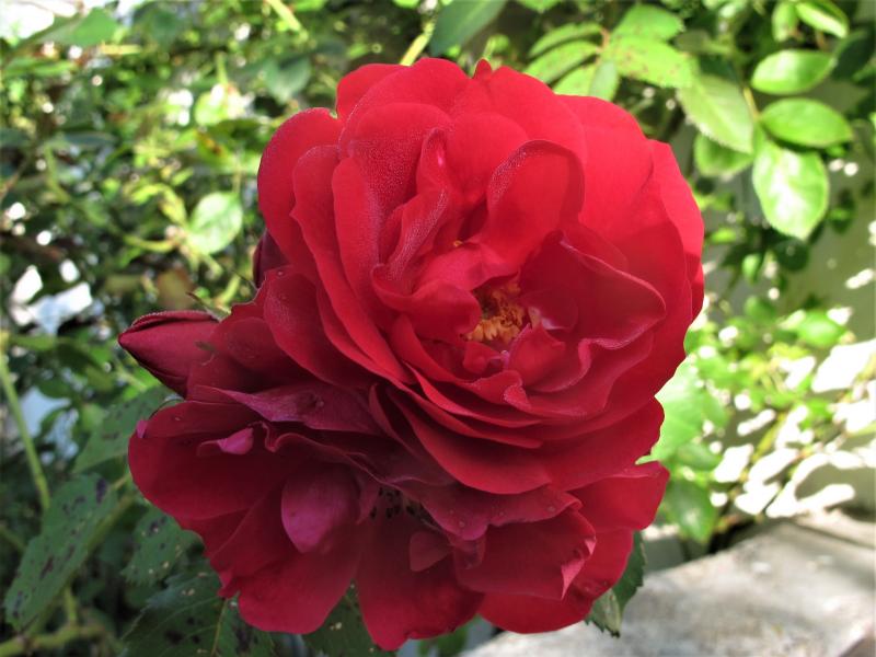 eine rose-für-die-insel-sicherheitskopie hat mir heute trotz eines äußerst mediokren pflanzplatzes eine erste blüte geschenkt – wie ich diese rose und ihren duft liebe! :D